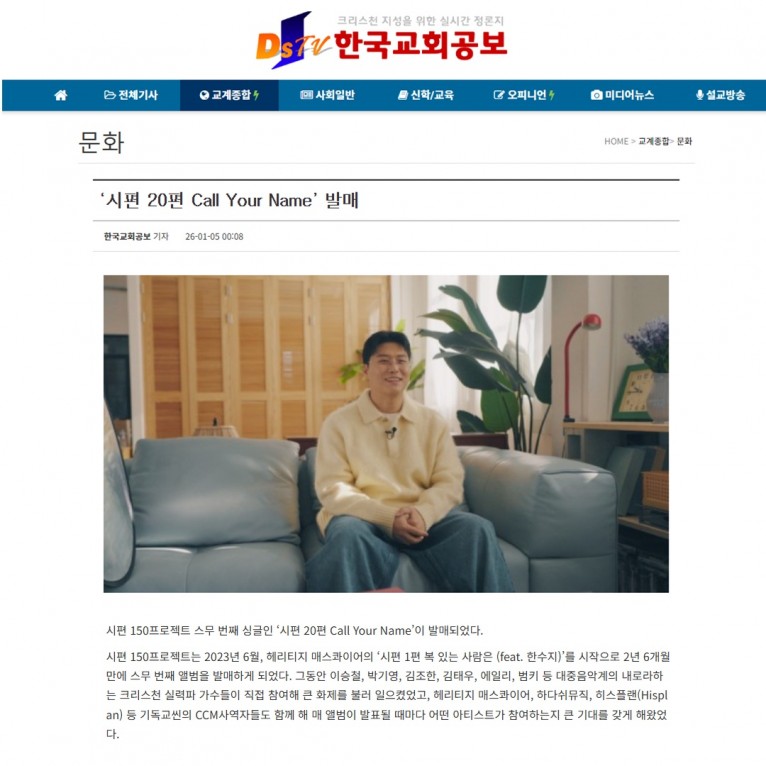 [기사] ‘시편 20편 Call Your Name’ 발매(한국교회공보)