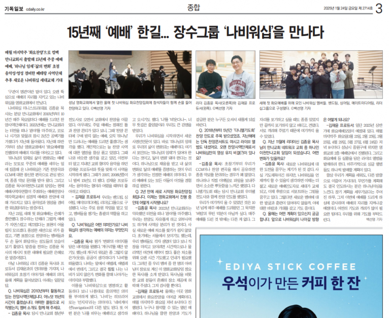뮤직타임 [기사, 인터뷰] 15년째 ‘예배’ 한길… 장수그룹 ‘나비워십’을 만나다(기독일보)